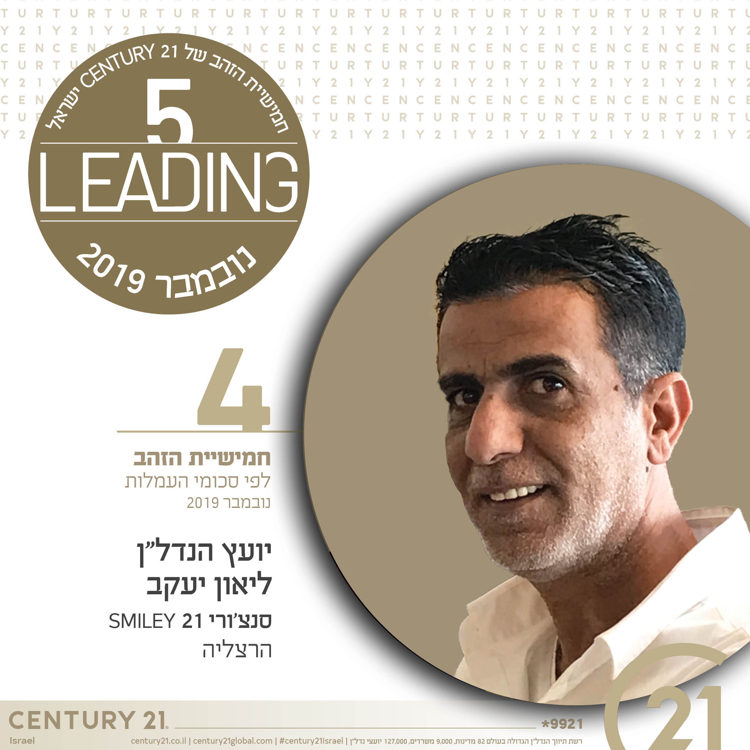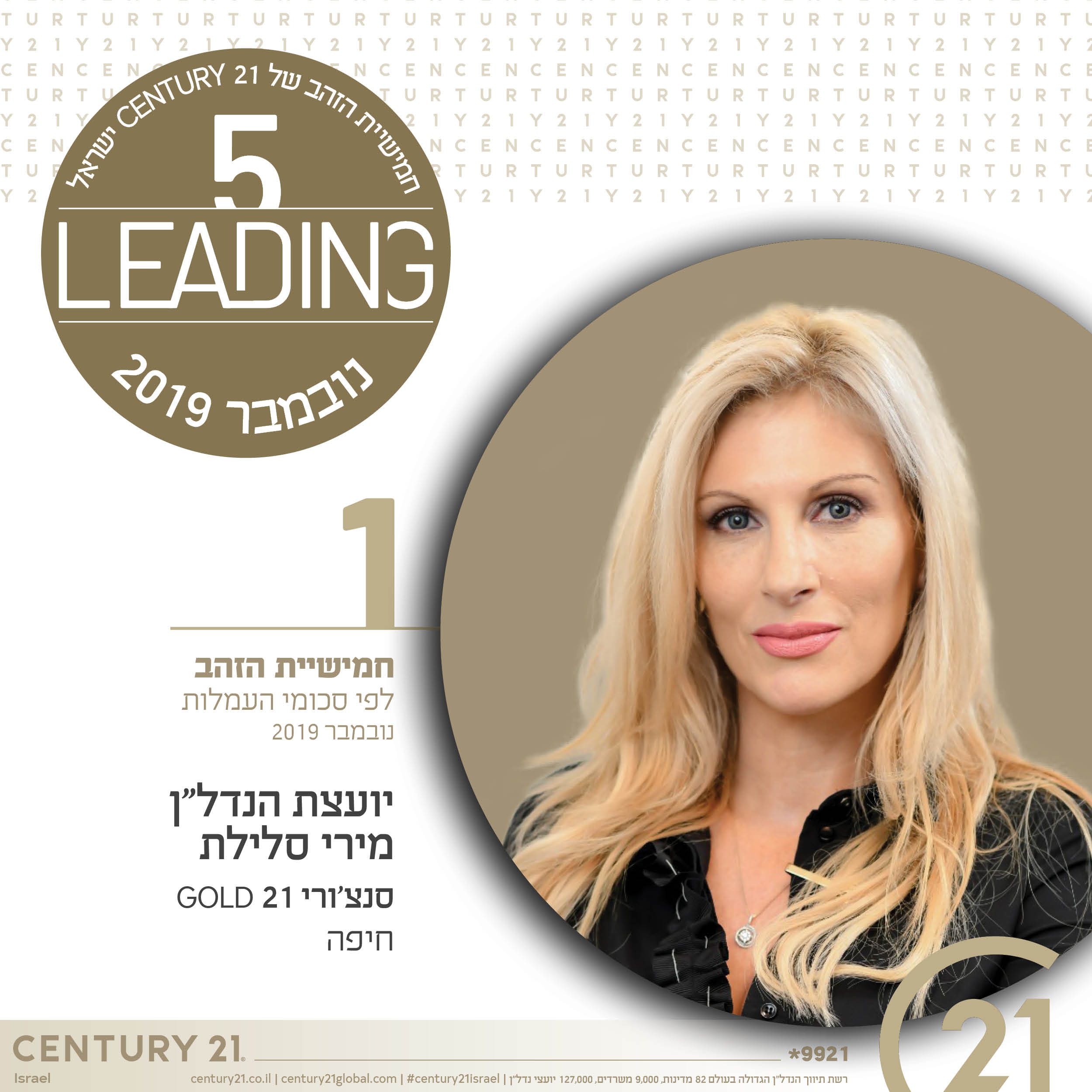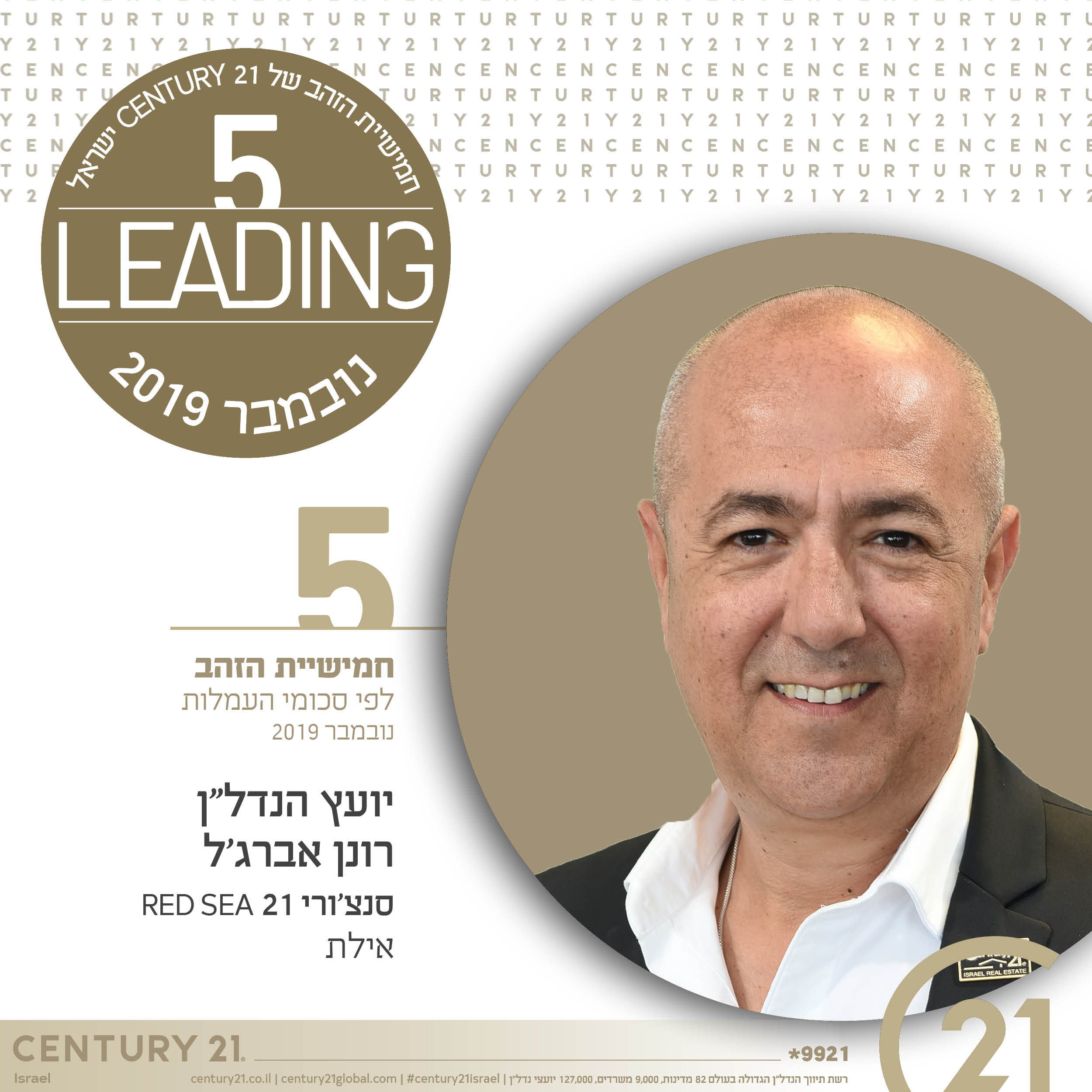ברכות לחמישיית הזהב של CENTURY 21 ישראל בחודש ספטמבר 2019